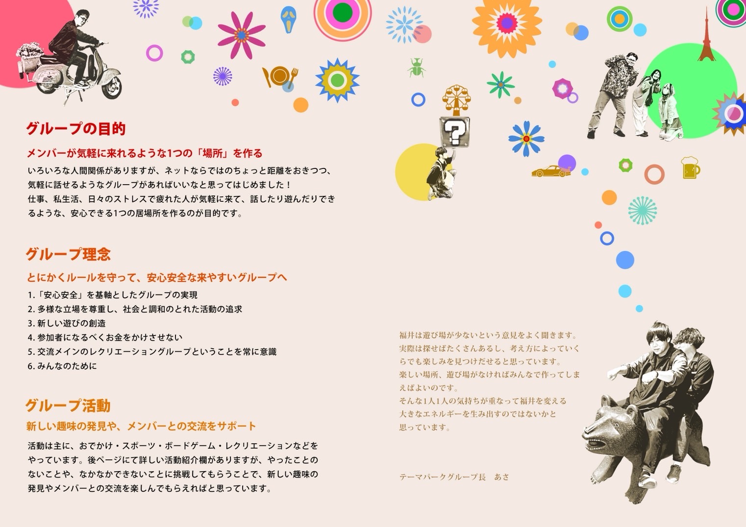 初めまして!私は福井県で『テーマパークグループ(略してテグル)』というサークルを運営しているあさと申します✨
